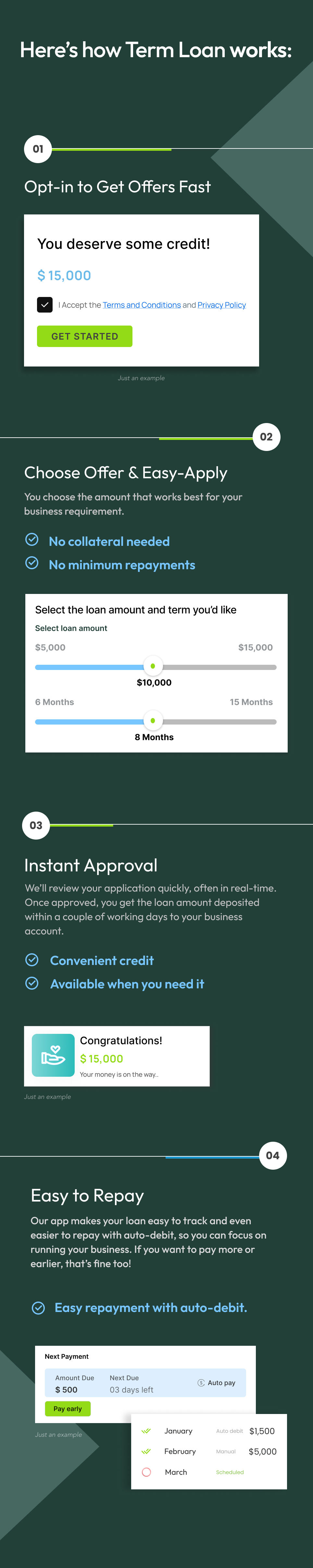 A term loan lets you borrow what you need today and pay back gradually over time. It's perfect when you need a money for important business spends.